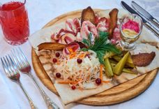 с говяжьим языком, телячьими почками, копченой колбасой, отварной говядиной