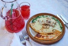 блинчик из шпинатного теста, фаршированный боровиками в сливочном соусе