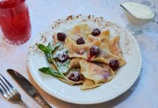Вареники с творогом. вишней и сметаной (1/210/30 г)