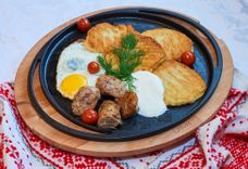 Драники с домашней колбасой и яйцом (1/240/100/50/25/2 г)